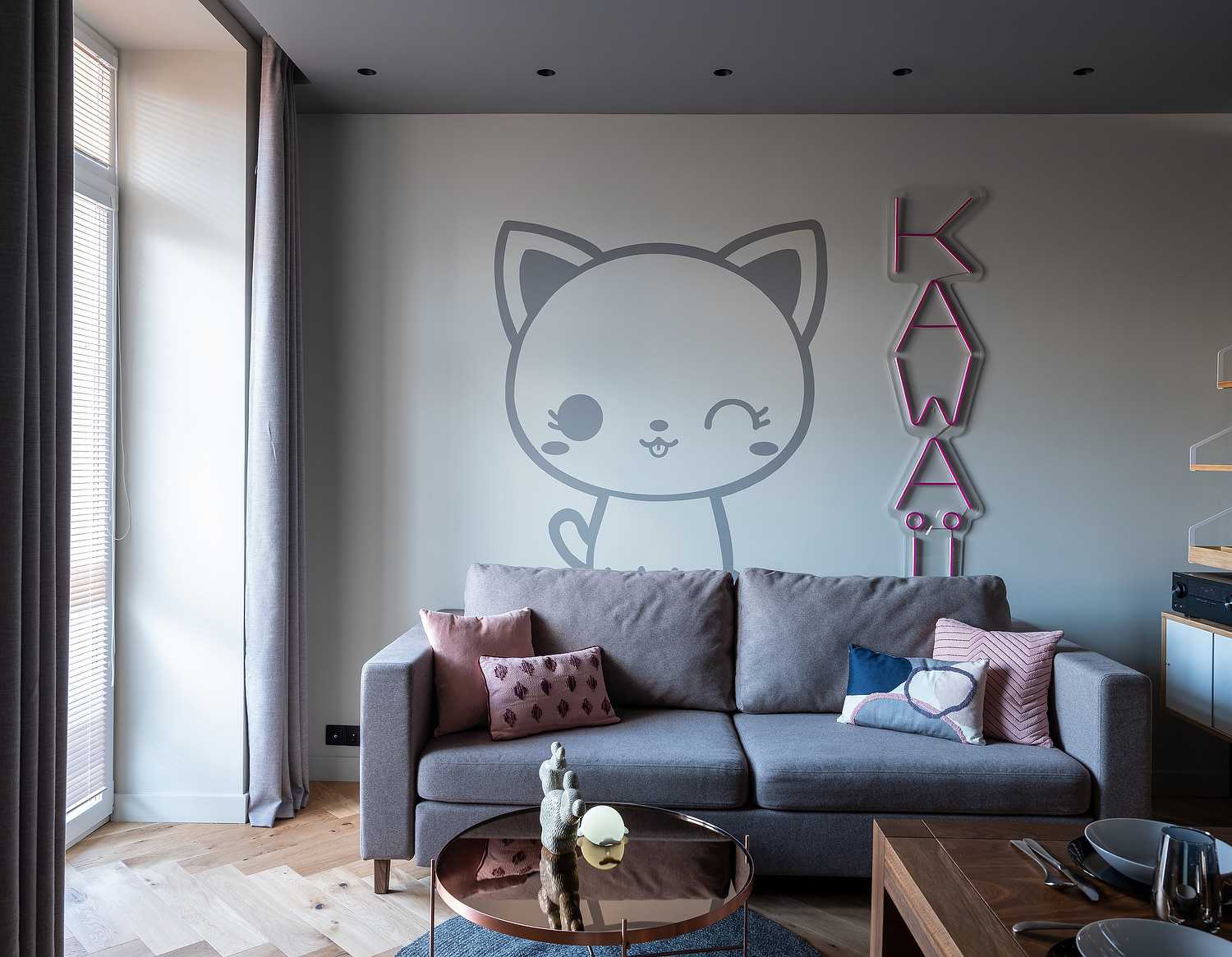 Проект «Кавайная гостиная» - задумка Пётра Лукьянова и Кирилла Устинова – основателей архитектурного бюро ANCconcept. По концепции авторов после переделки должны были получиться три отдельные зоны: прихожая, кухня и гостиная. При этом нужно было оставить максимальное количество открытого пространства. Для этих целей были снесены стены и создано специальное зонирование. В итоге – концепция удалась, а интерьер получился оригинальным за счет интересных декоративных приемов. В качестве красивого и функционального решения для оформления окна была выбрана кассетная система горизонтальных деревянных жалюзи Venus от компании AMIGO. Такой вид солнцезащиты позволяет довольно тонко регулировать уровень поступления естественного света в помещение. Удобное и простое управление горизонтальными жалюзи позволяет легко поднимать, опускать и фиксировать систему на любом необходимом уровне. Жалюзи установлены непосредственно на створку, а ламели плотно прилегают к стеклу, что сохраняет пространство у окна. В качестве материала для жалюзи были выбраны ламели из натурального бамбука. Цвет: отбеленный. Фактура натуральных материалов прекрасно смотрится на окне и выделяется при попадании солнечных лучей на ламели.
