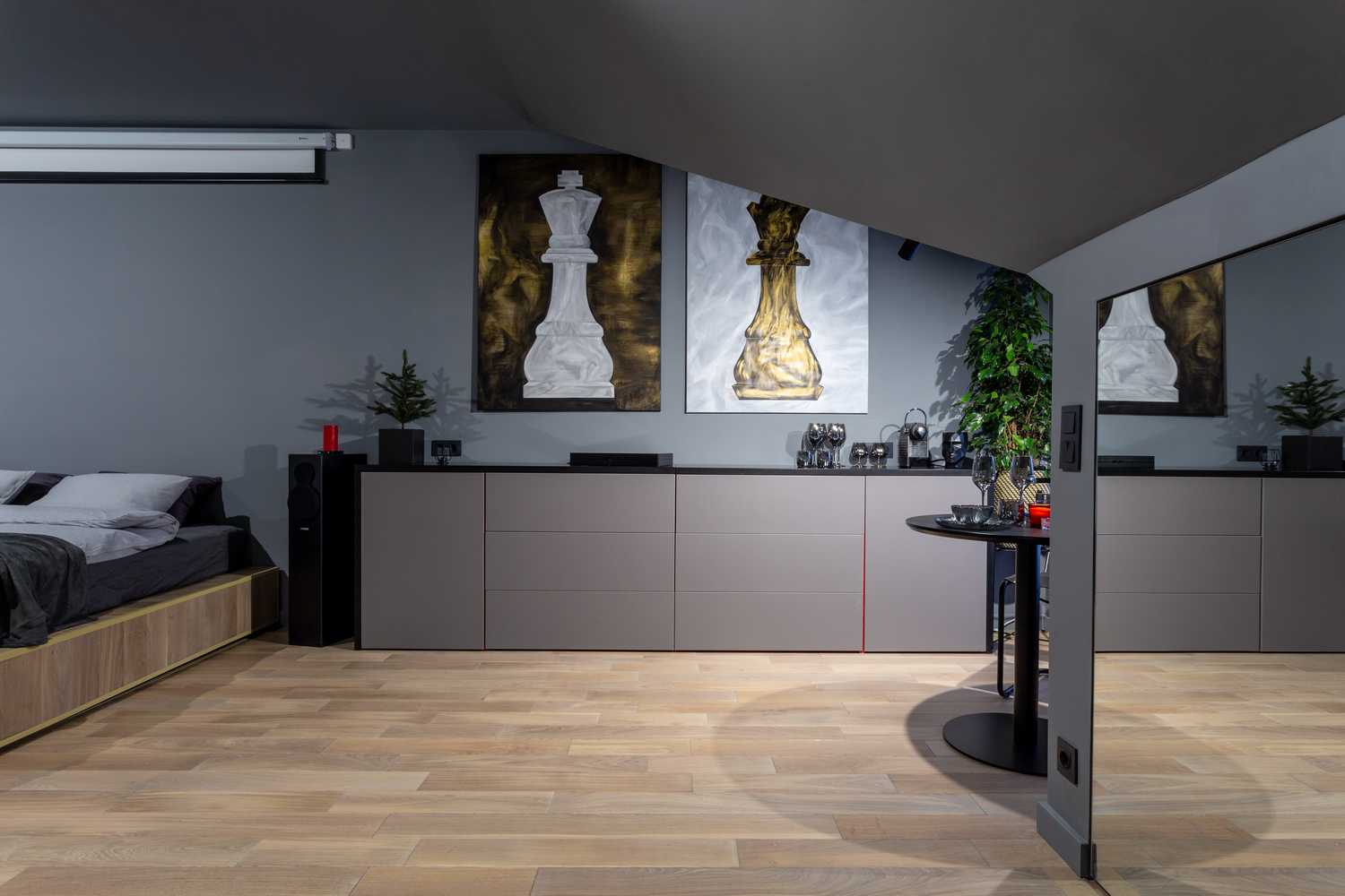 Переделка мансарды это всегда интересно, ведь пространство под крышей дает огромный простор для мысли дизайнера. Новый проект программы "Дачный ответ" - не исключение. "Бесконечная мансарда с блуждающим подиумом" - так редакция программы назвала проект. Почему? станет ясно, если вы пролистаете галерею. Мы же хотим отметить очень необычный прием оформления окон, предложенный автором проекта Никулиной Юлианной. Два "слоя" солнцезащиты на окнах нестандартной формы! Зачем? По задумке дизайнера, шторы гофре отвечают за функциональность и обеспечивают защиту от солнца и приватность, а рулонные шторы несут больше декоративный характер.