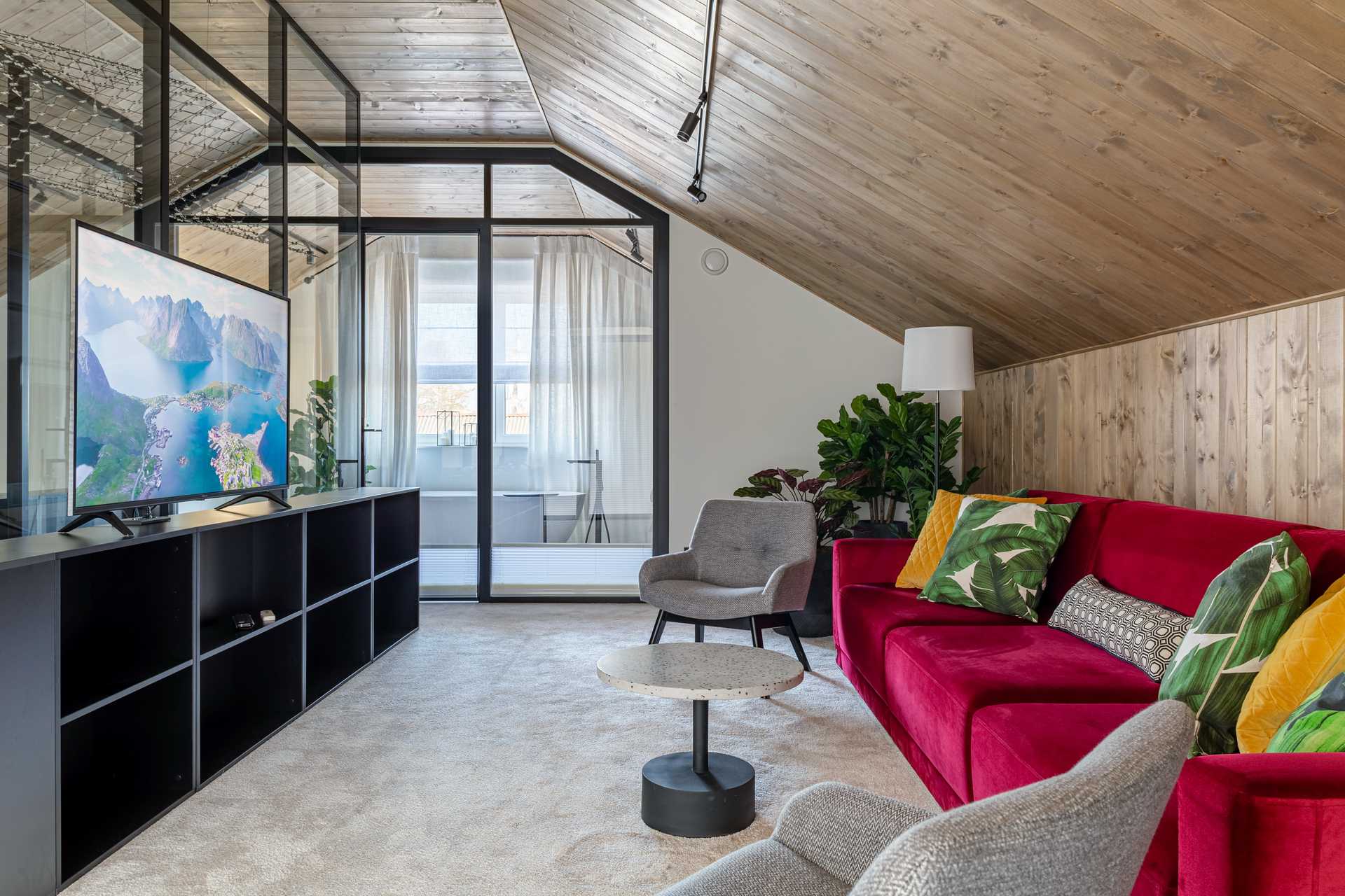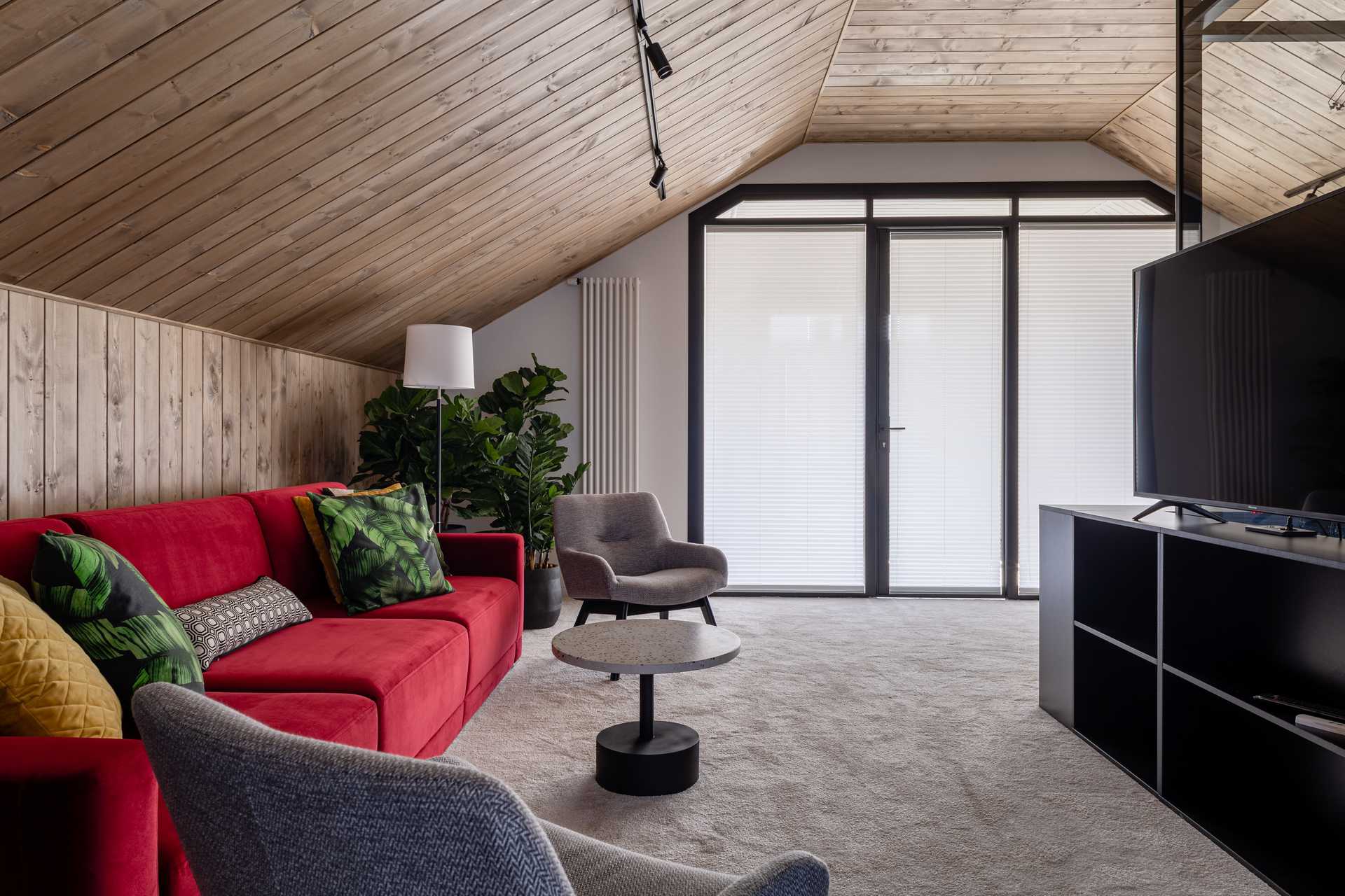 Специально для программы «Дачный ответ» дизайнер Анна Демушкина разработала оригинальный проект переделки мансарды. Весь проект решен в постельной цветовой гамме, присутствует множество теплых и мягких фактур. Что касается планировки, то в обновленном пространстве появилась уютная гостиная с небольшой кухонной зоной и отдельный санузел, который отделен стеклянной перегородкой. Кстати на перегородки установлены шторы Плиссе от AMIGO©️