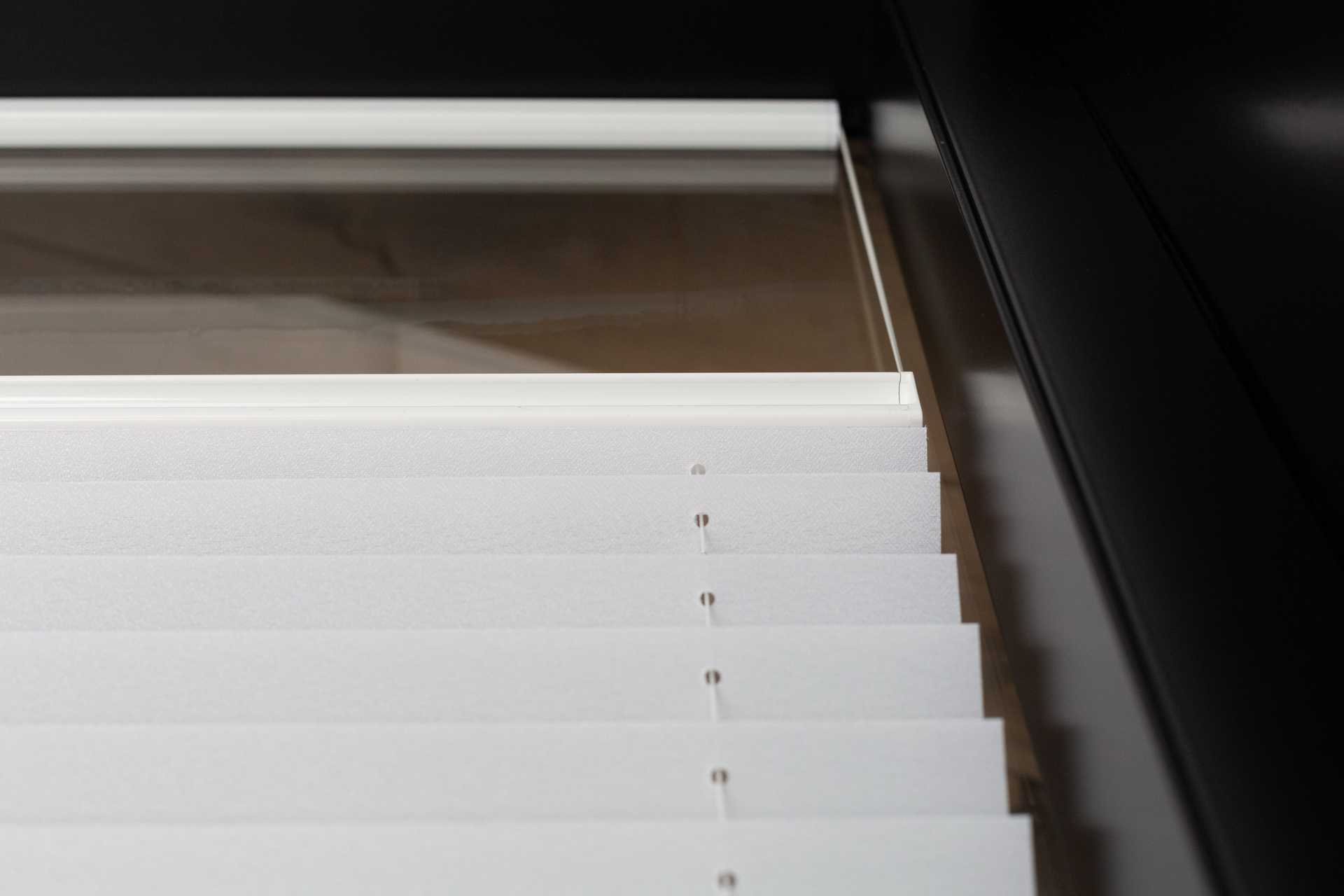 На стеклянную перегородку, разделяющую гостиную и санузел установлены ШТОРЫ ПЛИССЕ от компании AMIGO©️, изготовленные по индивидуальным размерам. Особенность данной системы в плиссированной ткани, которая оригинально смотрится в полотне и позволяет "собирать" ткань, закрывая нужный сегмент окна или, как в данном случае, перегородки. Материалом для штор выбрана ткань Плиссе КРЕП белого цвета. Этот полупрозрачный материал обеспечивает необходимую приватность, при этом пропускает до 45% света.