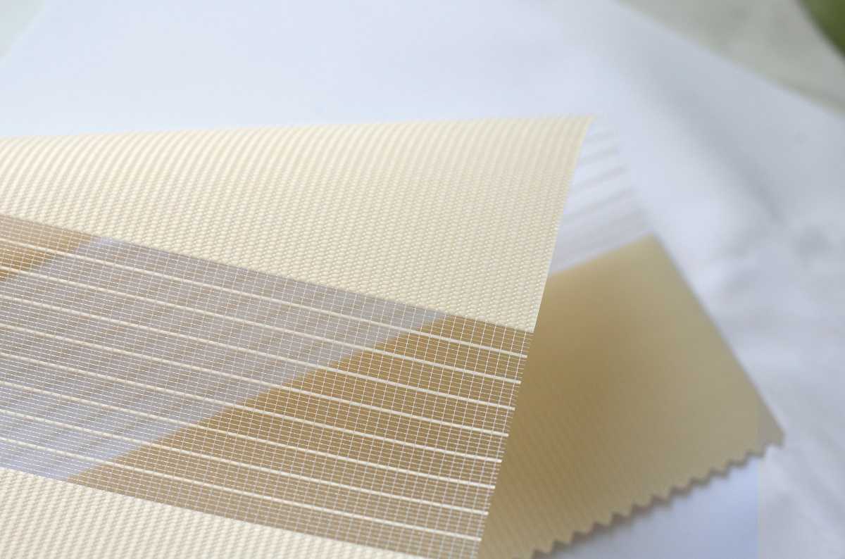 Рулонная штора зебра FixLine BASIC бежевого цвета - это удобная и практичная штора для декора окон и защиты от солнца. Материал обладает высокими прочностными характеристиками, не выгорает