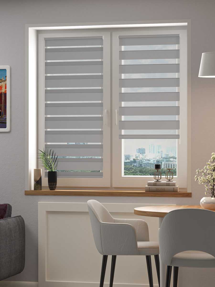 Рулонная штора зебра FixLine BASIC серого цвета - это удобная и практичная штора для декора окон и защиты от солнца. Материал обладает высокими прочностными характеристиками, не выгорает