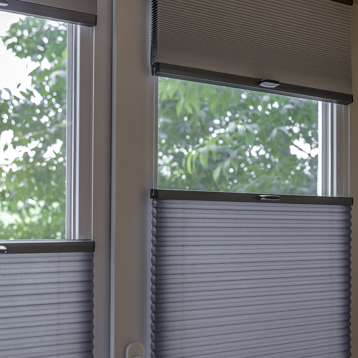 Такие шторы могут монтироваться при наклоне до 60 градусов, для управления используются одна или две ручки на карнизе.